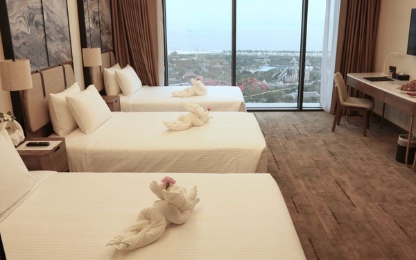 Bên cạnh đó, khách sạn hàng đầu Hạ Long trên mang đến không gian thiết kế sang trọng và đảm bảo cung cấp đầy đủ trang thiết bị hiện đại, tổ hợp dịch vụ đa dạng cùng các hạng mục đẳng cấp như nhà hàng – lounge, không gian tổ chức hội nghị & sự kiện, bể bơi, khu spa – phòng tập thể thao…đạt chất lượng 5 sao xa hoa phục vụ cho qua trình lưu trú xa hoa của bạn và người thân.